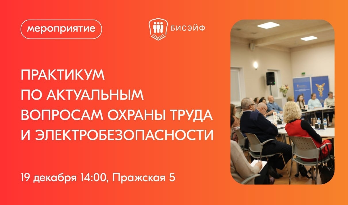 ООО «Учебно-консультационный центр «БИ СЭЙФ» приглашает Вас принять участие в БЕСПЛАТНОМ практикуме: «Экспертный практикум по актуальным вопросам охраны труда и электробезопасности», в ходе которого будет проводитьсясовершенствование навыков оказания первой помощи пострадавшим, увлекательный тим-билдинг по электробезопасности, стратегическая игра «Миссия: ЗАЩИТА».